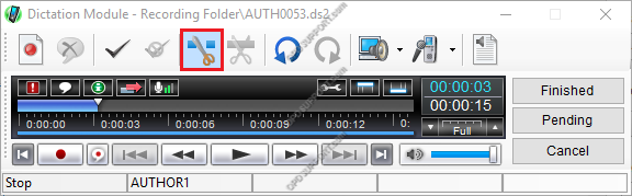 Dikte işini bitirmek isterseniz Finished, Pending veya Cancel seçeneklerinden birini seçin.