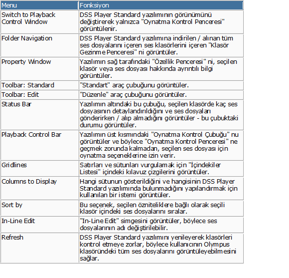 VIEW MENÜSÜ
