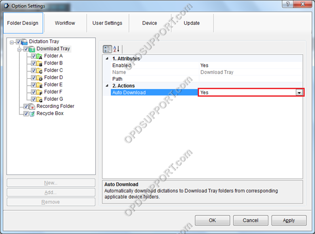 o Not: Download Tray seçmek, ayarları otomatik olarak Klasörler A-G’ye uygular. Bu, her klasör için ayarı yapılandırma süresinden tasarruf edebilir.